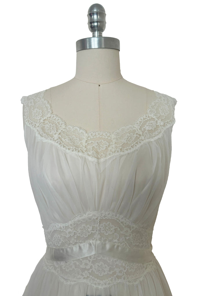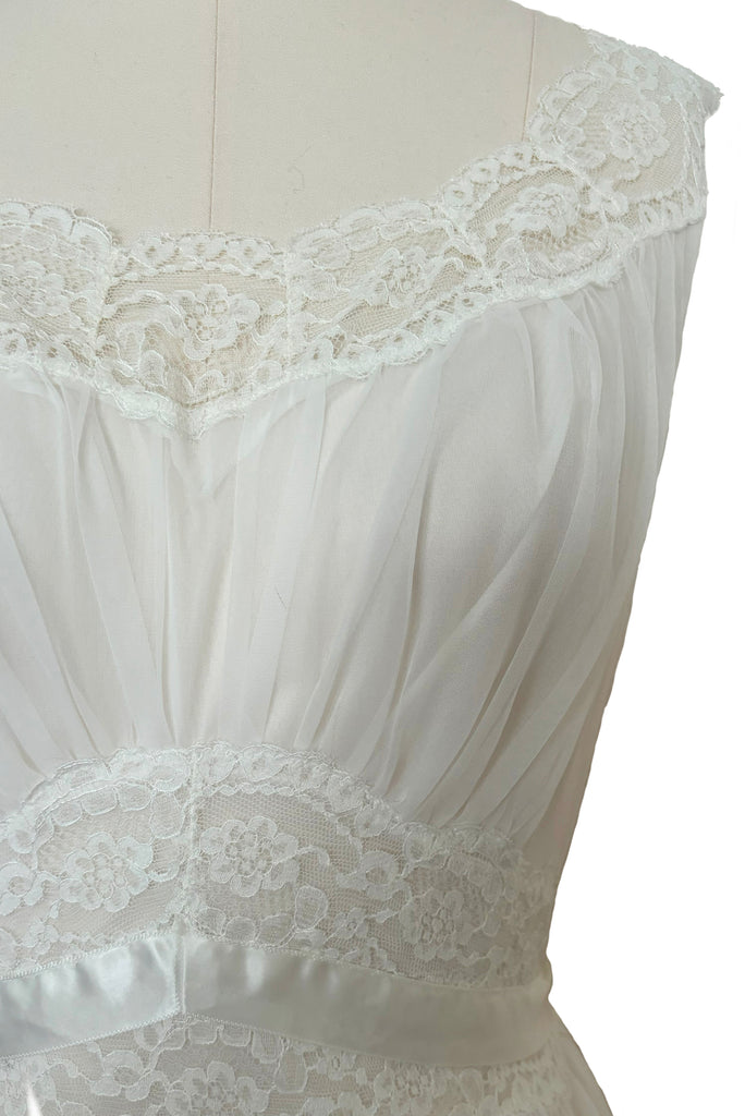 1940s Vintage Bridal Lingerie White Nylon Ballerina Nightgown by Vanity Fair, Small to Medium