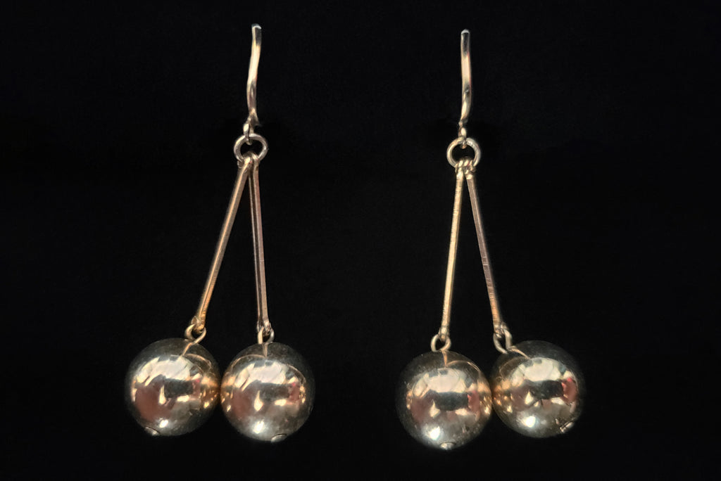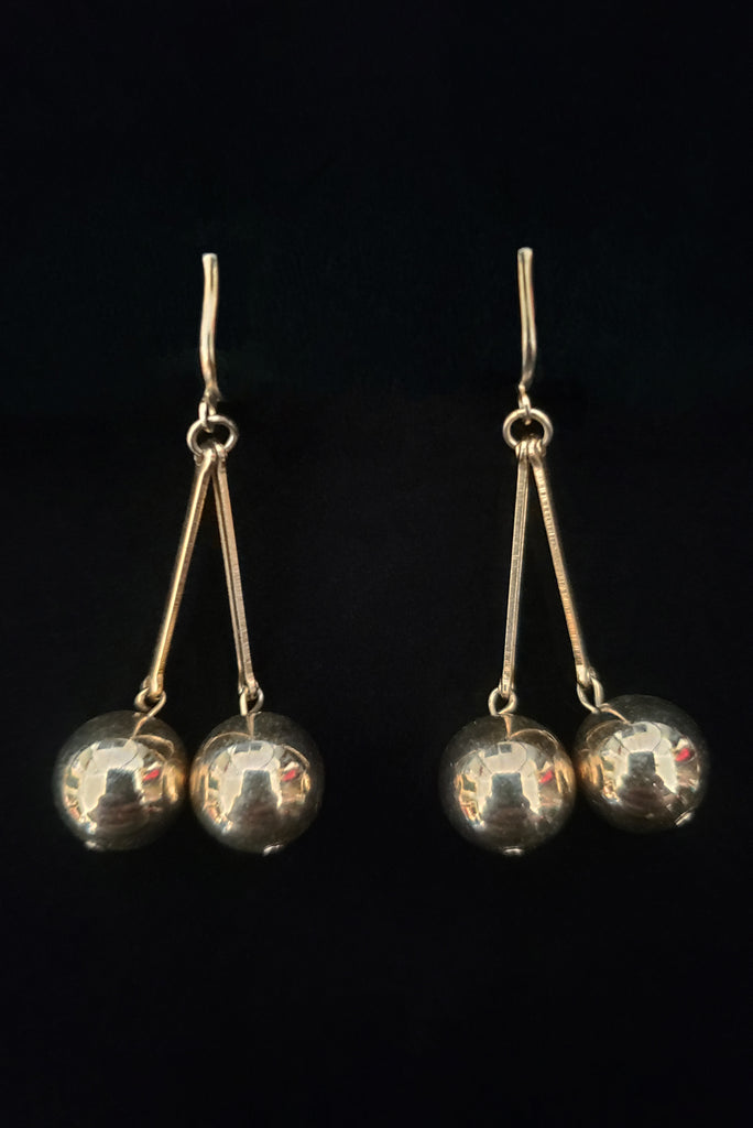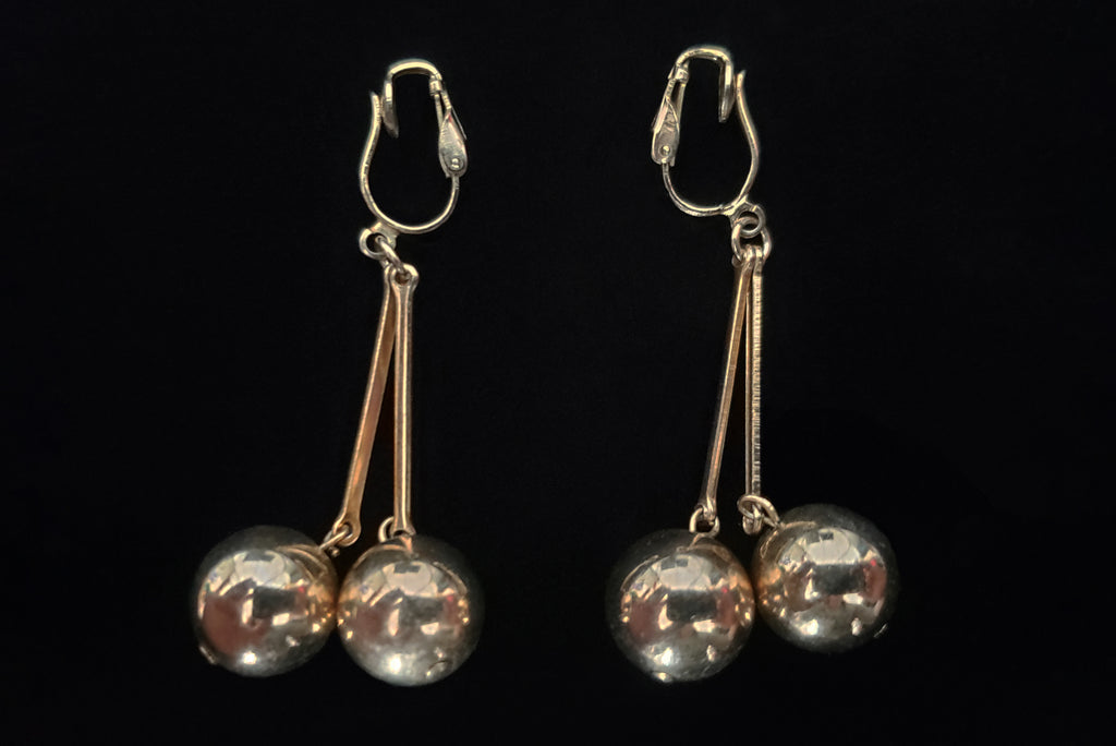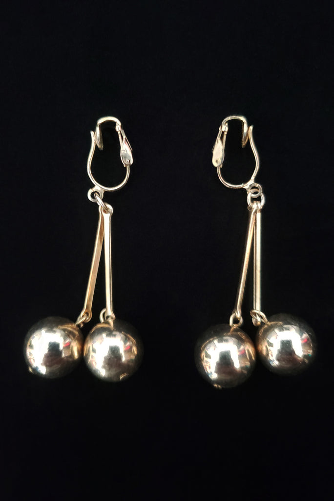 1960s Vintage Mod Gold Tone Double Drop Faux Pierced Clip-On Earrings