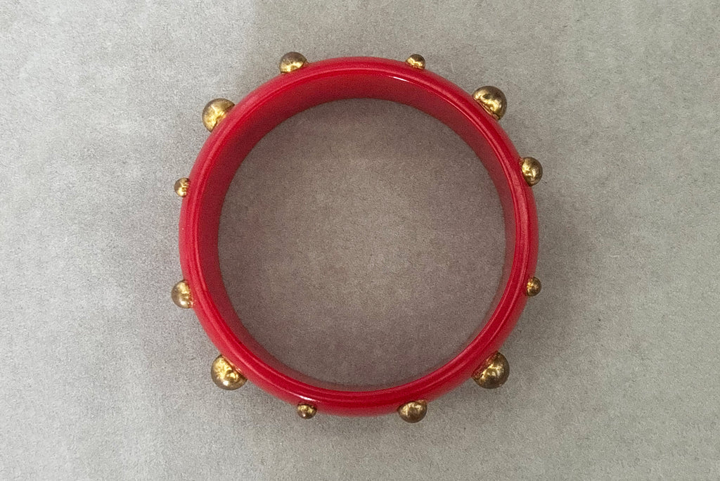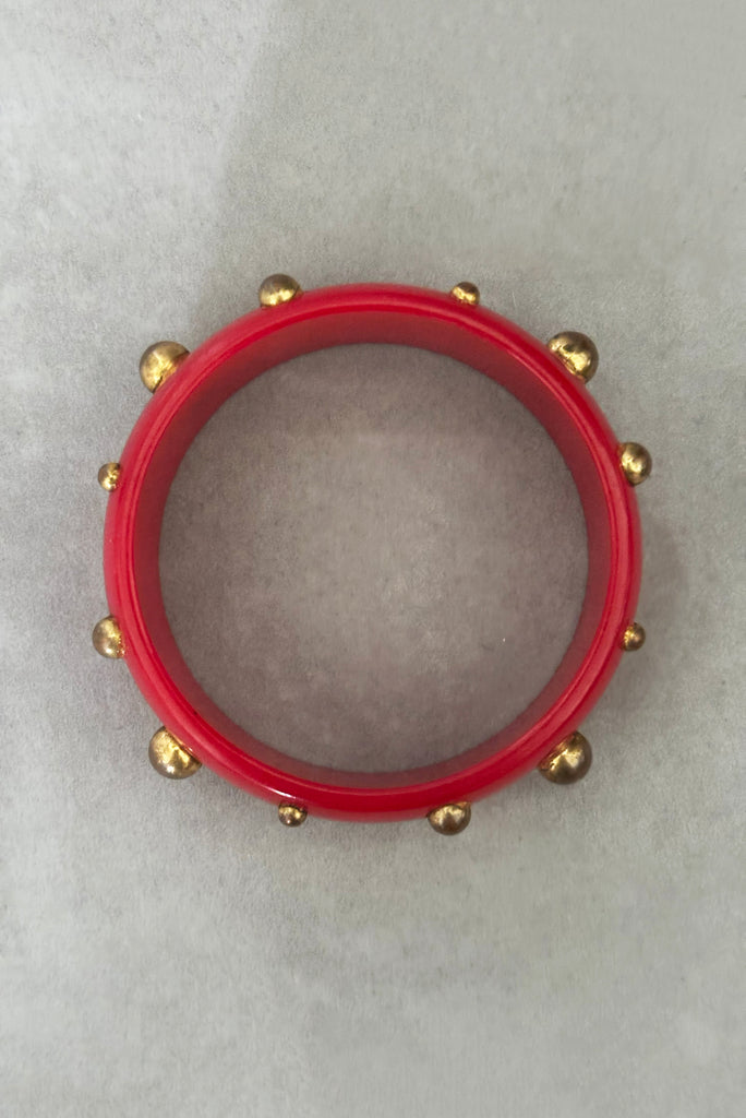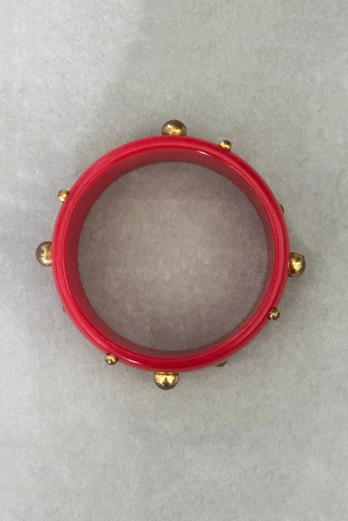 1940s Vintage Brass Studded Rich Cherry Red Bakelite Bangle