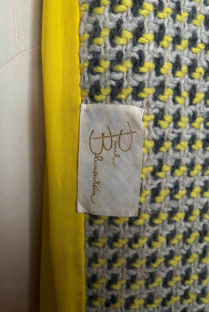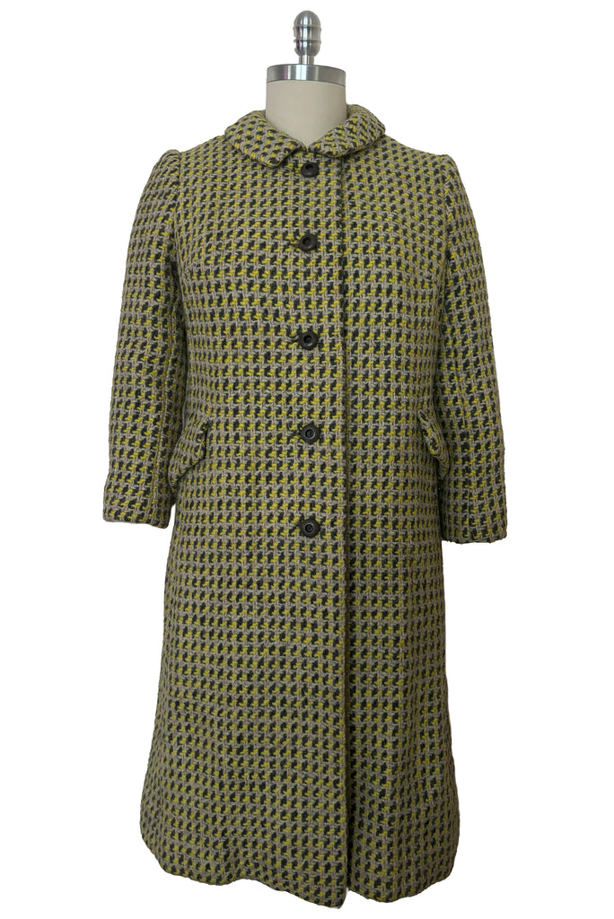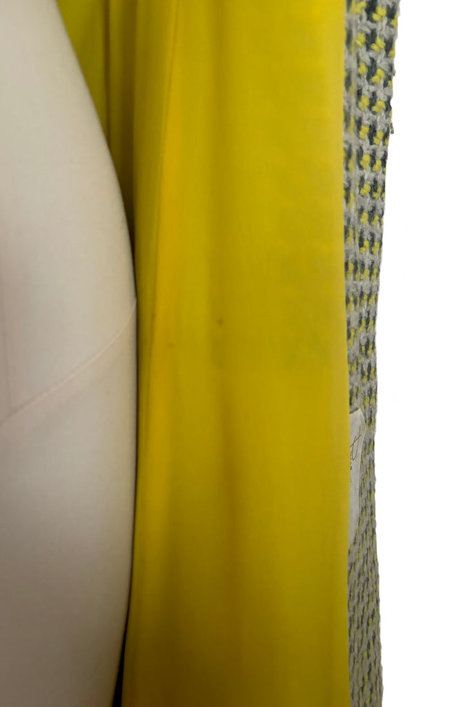 1960s Vintage Knee Length Citron Yellow, Gray, and White Wool Coat, by Paul Blumenstein, Small to Medium
