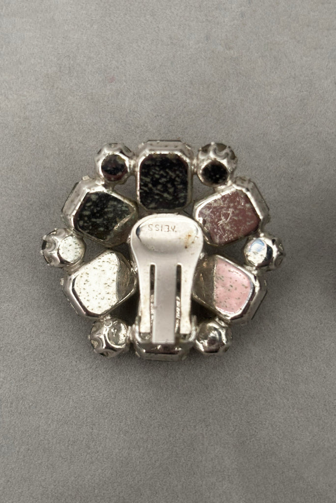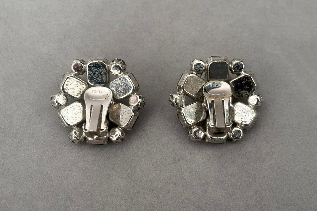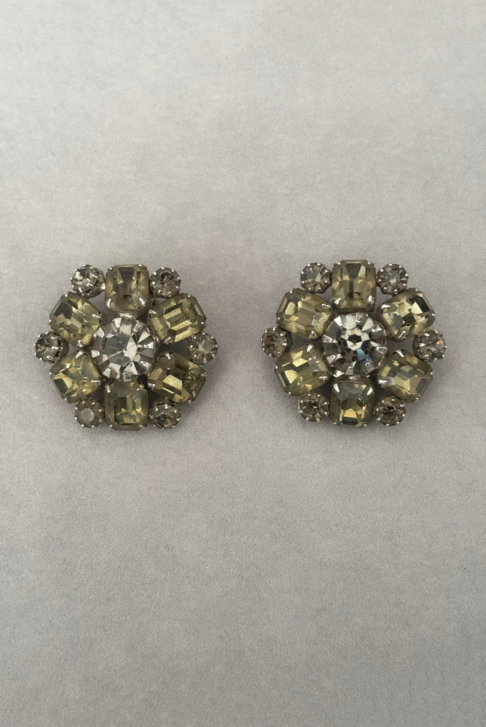 1950s Vintage Smoke Gray Rhinestone Round Clip-On Earrings by Weiss
