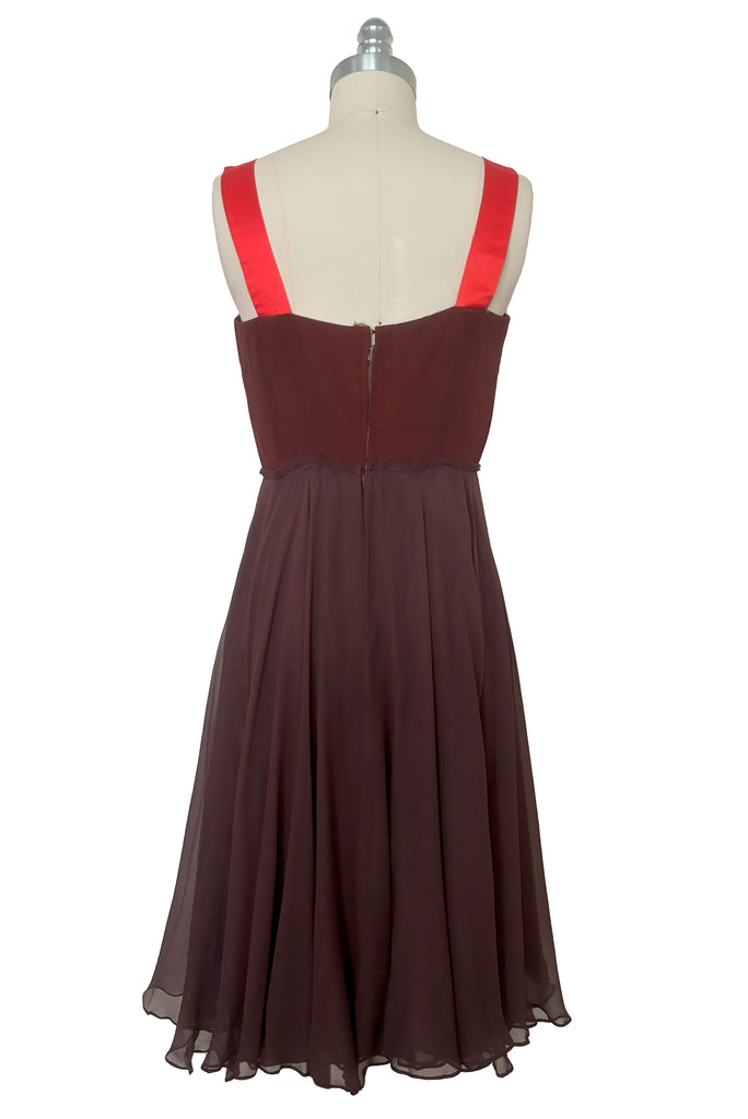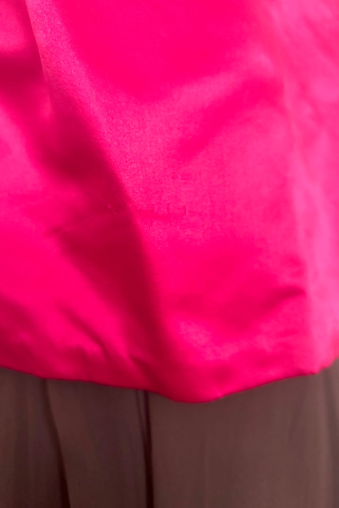 1960s Vintage Hot Pink Silk Satin and Brown Silk Chiffon Cocktail Dress Set, Extra Small to Small