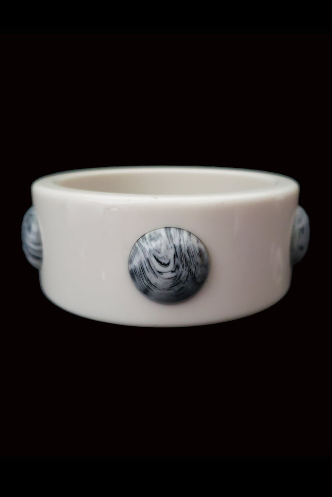 1960s Vintage White Sliced Lucite Bangle Bracelet with Raised Gray Marbled Dots